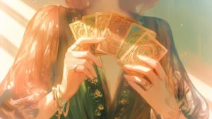オラクルカードを手にする女性